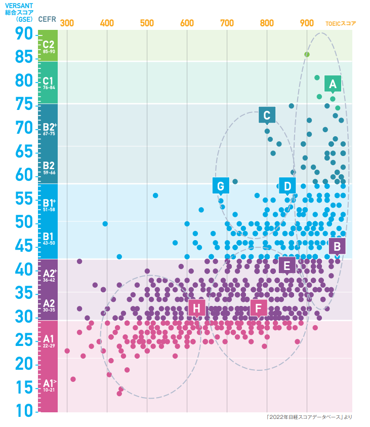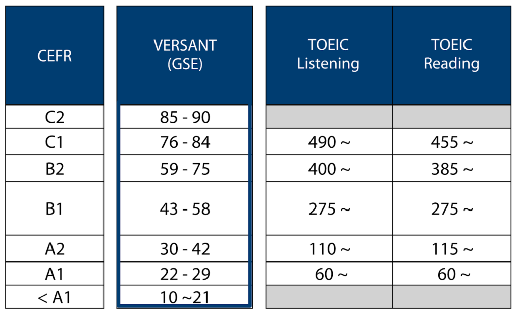 - VERSANTスコアとCEFRの対応関係