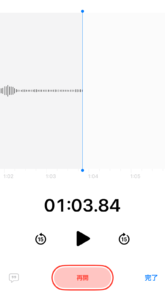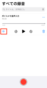 ① ボイスメモアプリを開いて、録音ボタンを押して英語を話します。