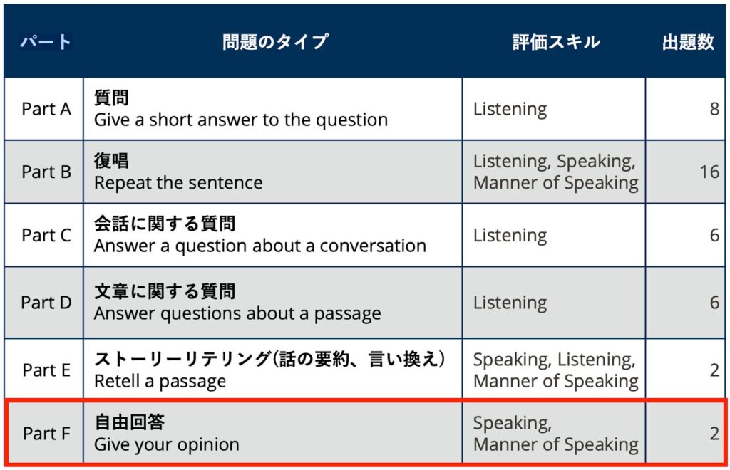 そこで本記事では、Part Fの出題形式・特徴・評価基準を整理し、問題例と回答例、さらにスコアアップにつながる勉強法をご紹介します。