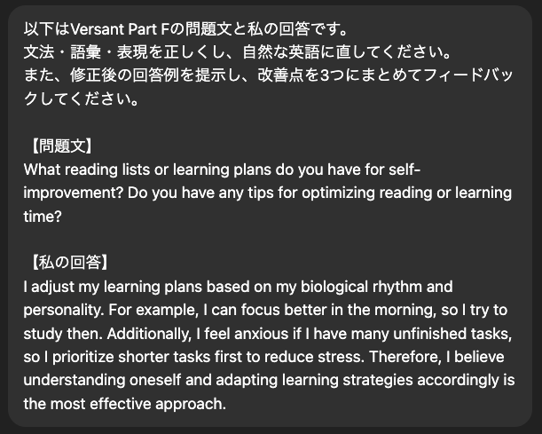 - 自分の回答をAI(Chat GPTなど)で添削してもらう