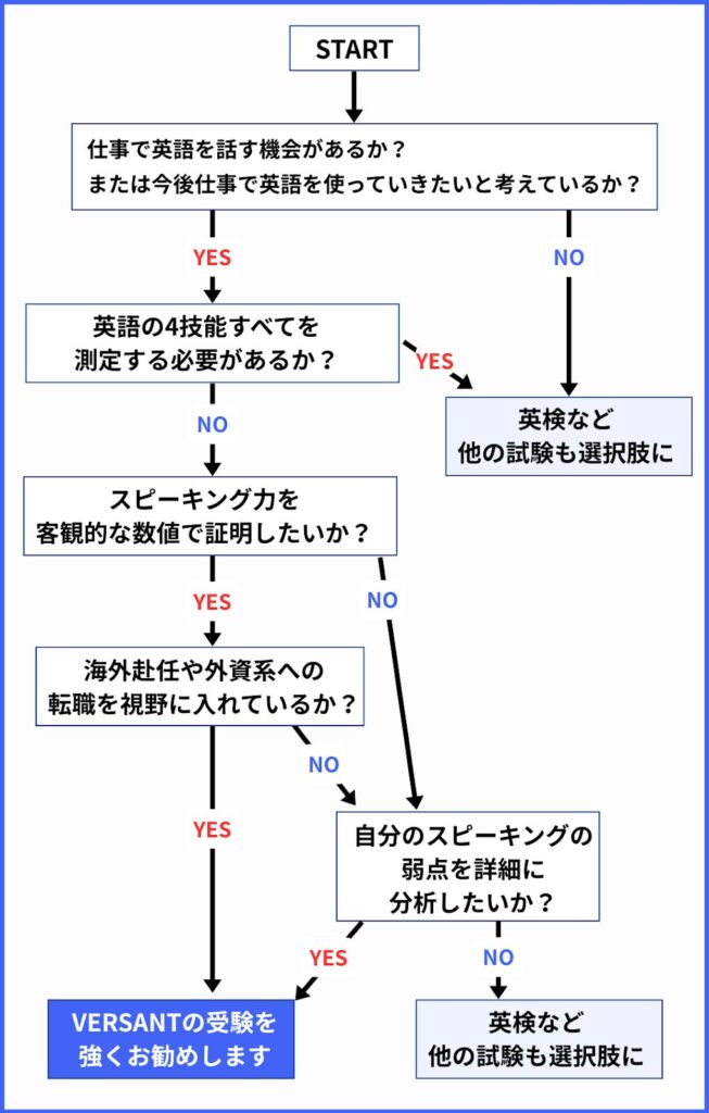 しかし、誰もがVERSANTを受験すべきかというと、答えは「No」です。
