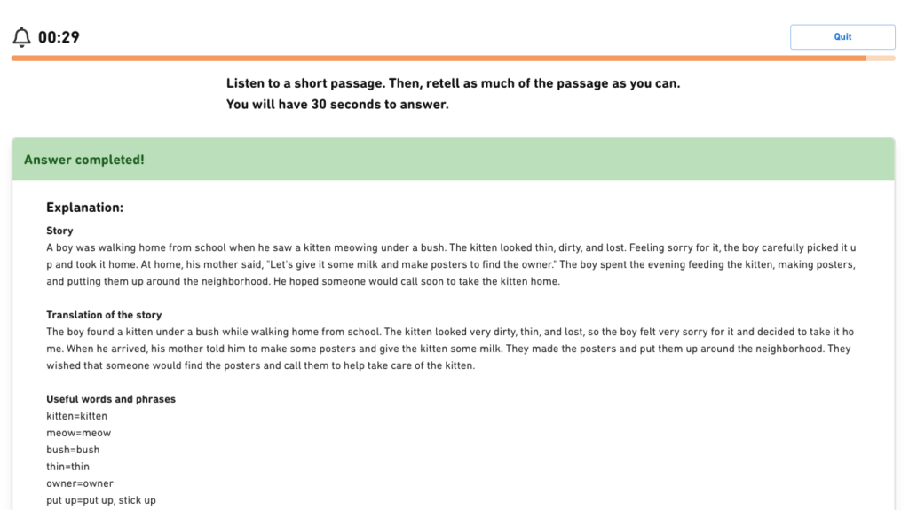 - 試験後は、総合スコア・各パートスコア・自分の回答音声の確認が可能