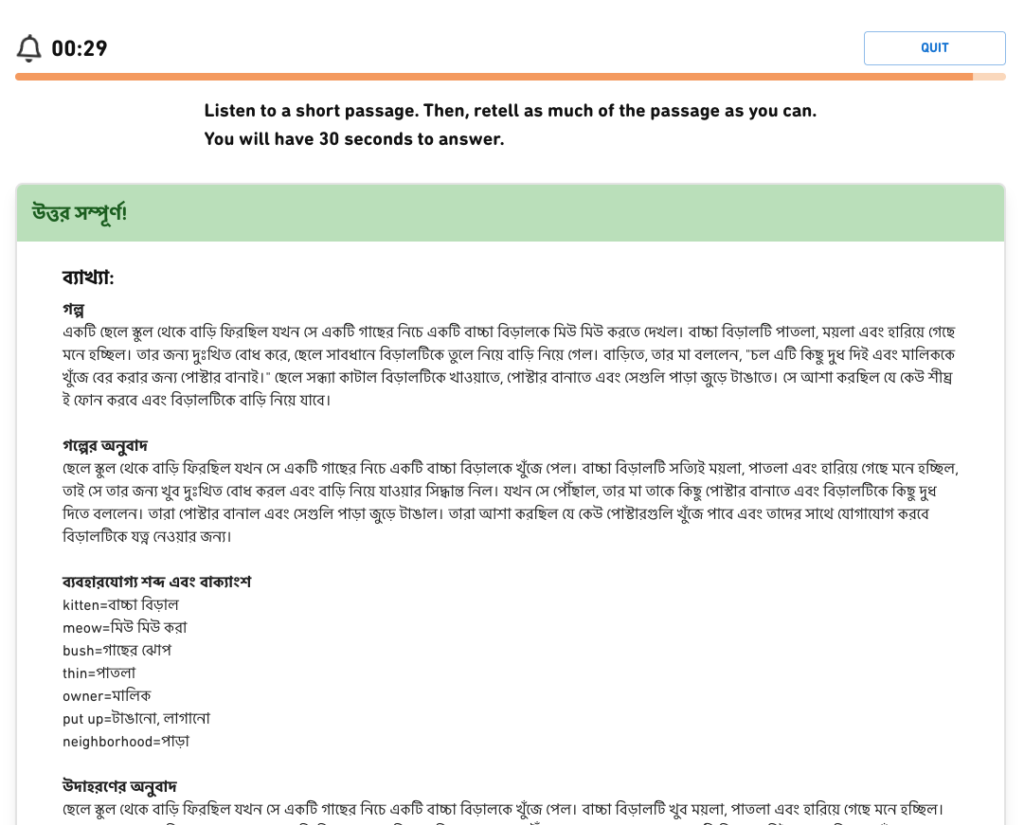 VERSANT Bridgeでは、本番とほぼ同じ形式で模擬試験を受けることができます。