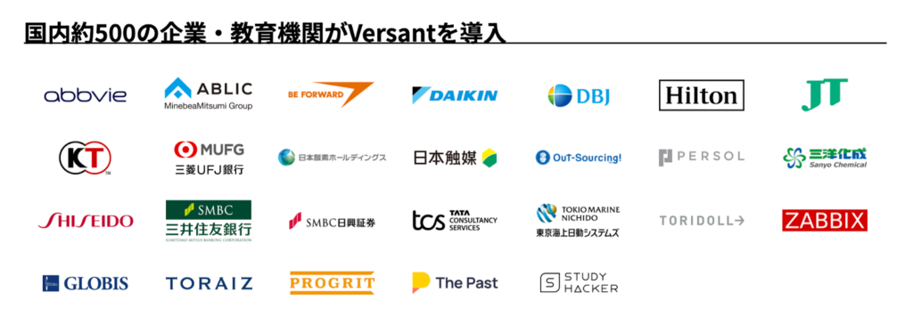 実際に、三菱UFJ銀行や資生堂、TORAIZをはじめ、約500の企業・教育機関がVERSANTを導入しています。