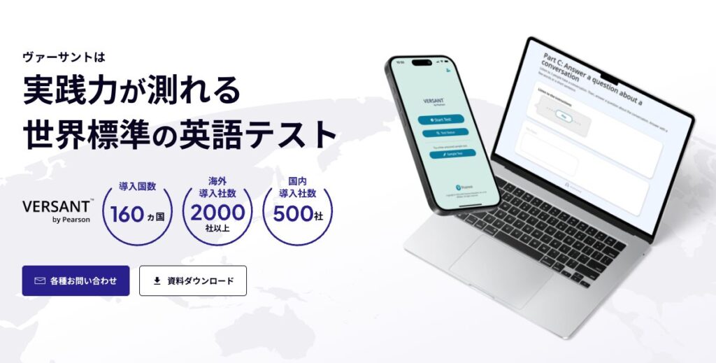 VERSANT Speaking & Listeningは、Pearson社が開発した、ビジネスで使える実践的な英語力(スピーキング・リスニング)を測るオンライン型テストです。