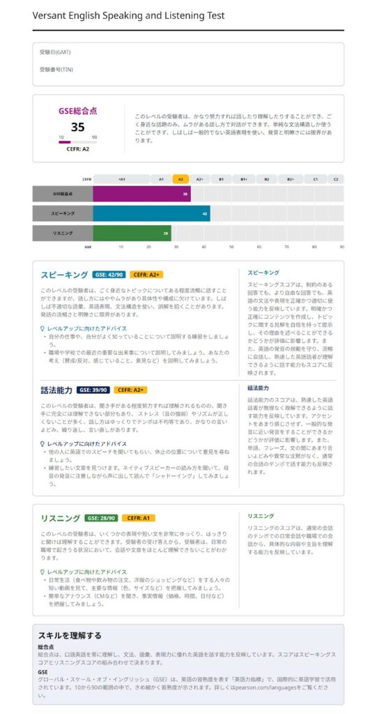 VERSANT(正式名称:VERSANT by Pearson English Speaking and Listening Test)を受けたあと、スコア表を見てモヤっとしたまま終わっていませんか?