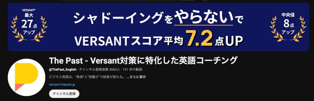 特におすすめなのが、The Past - VERSANT対策に特化した英語コーチングのチャンネルです。