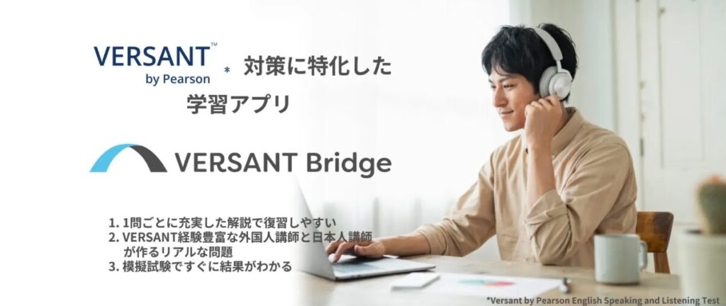 「VERSANT Bridge」は、日本で初めてのVERSANT対策に特化した学習アプリです。