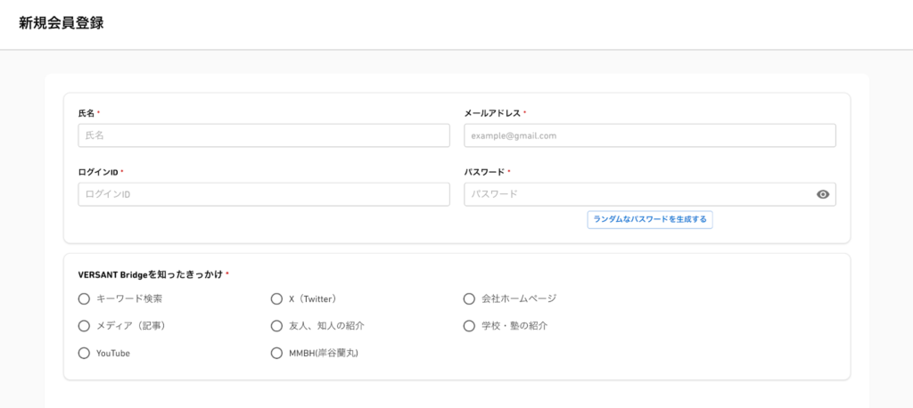 VERSANT Bridgeに登録していない方は、まず会員登録をお願いします。