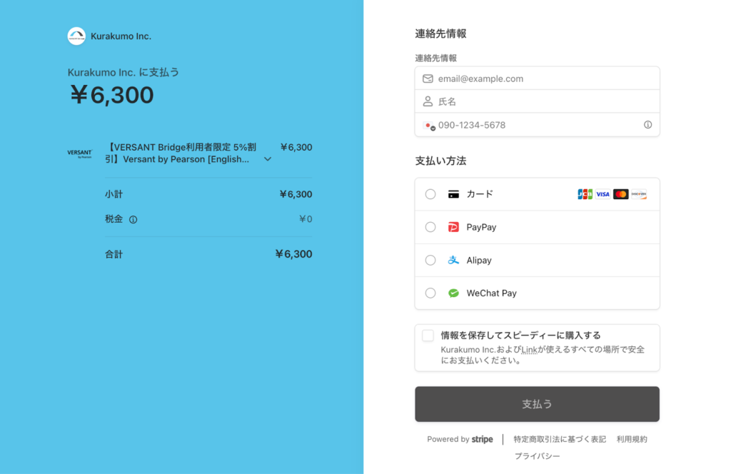 | クラクモ株式会社(VERSANT Bridge) | クレジットカード、PayPay、Alipay、WeChat Pay |