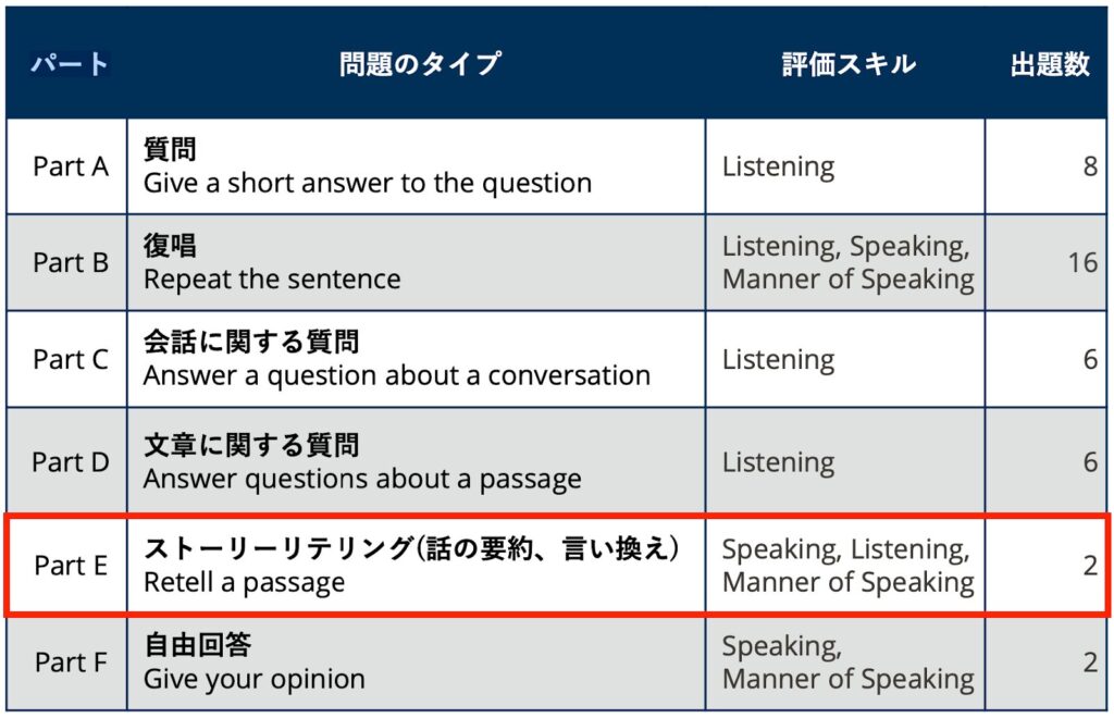 Part Eは、ストーリーを聞いた後に、「自分の言葉で内容を言い直す」問題です。