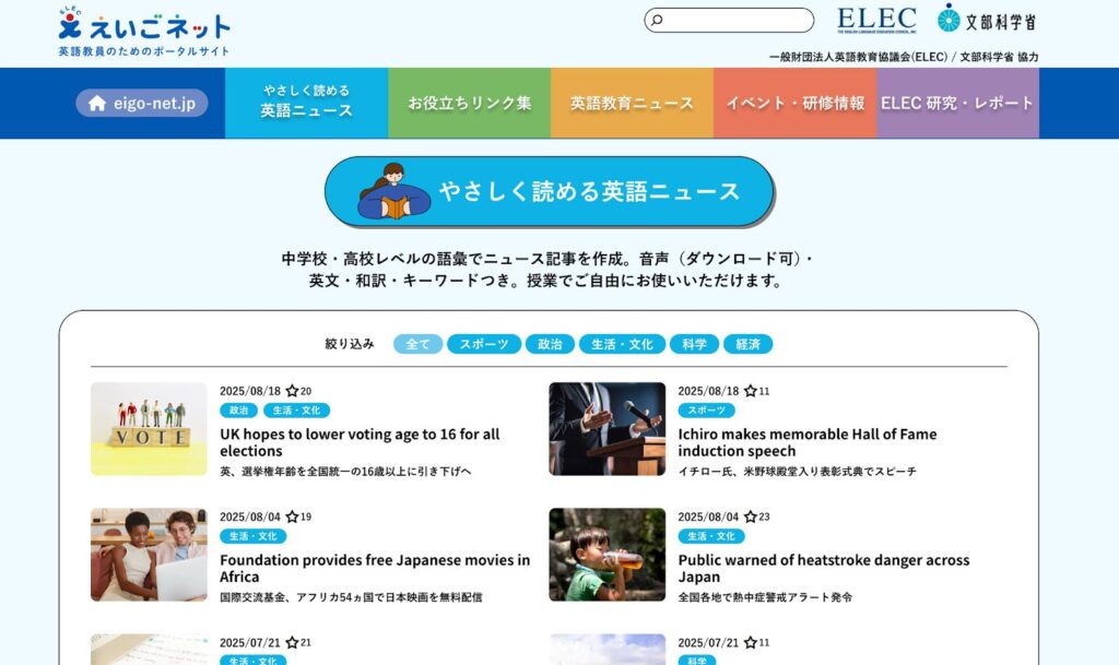 今回は「やさしく読める英語ニュース」の英文を例として紹介します。