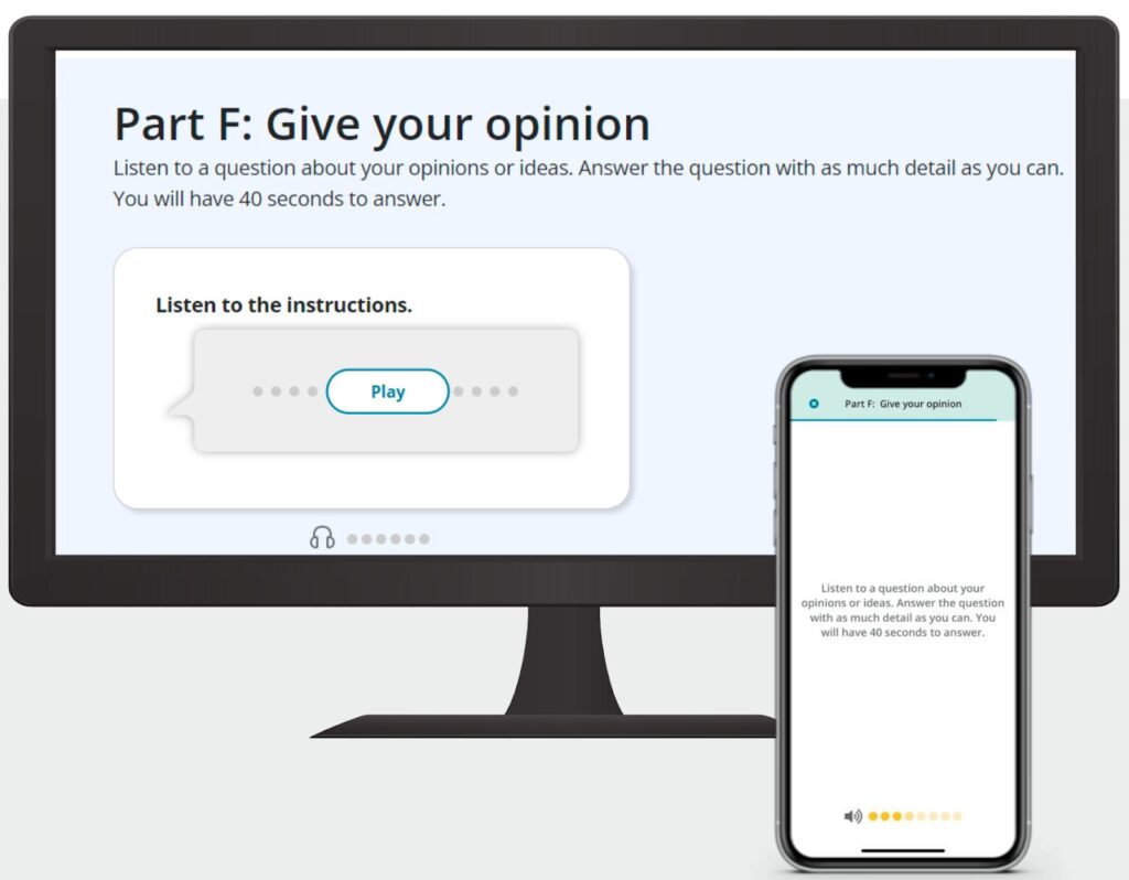 Part Fは、設問に対して自分の意見や考えを述べる問題です。